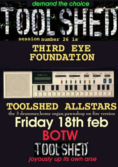 Fri 18 :Feb - Toolshed (Live) - Session #26 - Toolshed Allstars featuring Third Eye Foundation - Band on the Wall - Manchester, England ![]() Fri 4 :Feb - Homelife (Live) - Band on the Wall - Manchester, England (First ever Homelife gig) ![]() |